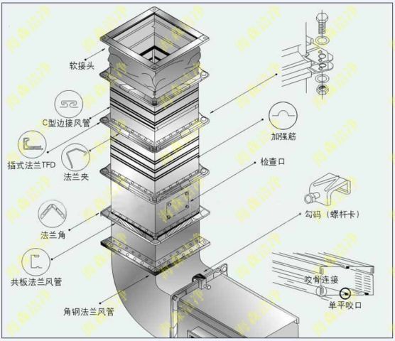 風(fēng)管,是用于空氣輸送和分布的管道系統(tǒng)。有復(fù)合風(fēng)管和無(wú)機(jī)風(fēng)管兩種。復(fù)合風(fēng)管以Durkduct風(fēng)管為代表??砂唇孛嫘螤詈筒馁|(zhì)分類(lèi)。風(fēng)管制作不銹鋼風(fēng)管制作是在咬口縫、鉚釘縫、法蘭翻邊四角等縫隙處涂上密封膠(如中性玻璃膠)。涂密封膠前應(yīng)清除表面塵土和油污。按截面形狀,風(fēng)管可分為圓形風(fēng)管,矩形風(fēng)管,扁圓風(fēng)管等多種,其中圓形風(fēng)管阻力小但高度尺寸大,制作復(fù)雜。所以應(yīng)用以矩形風(fēng)管為主。按材質(zhì),風(fēng)管可分為金屬風(fēng)管,復(fù)合風(fēng)管,高分子風(fēng)管。